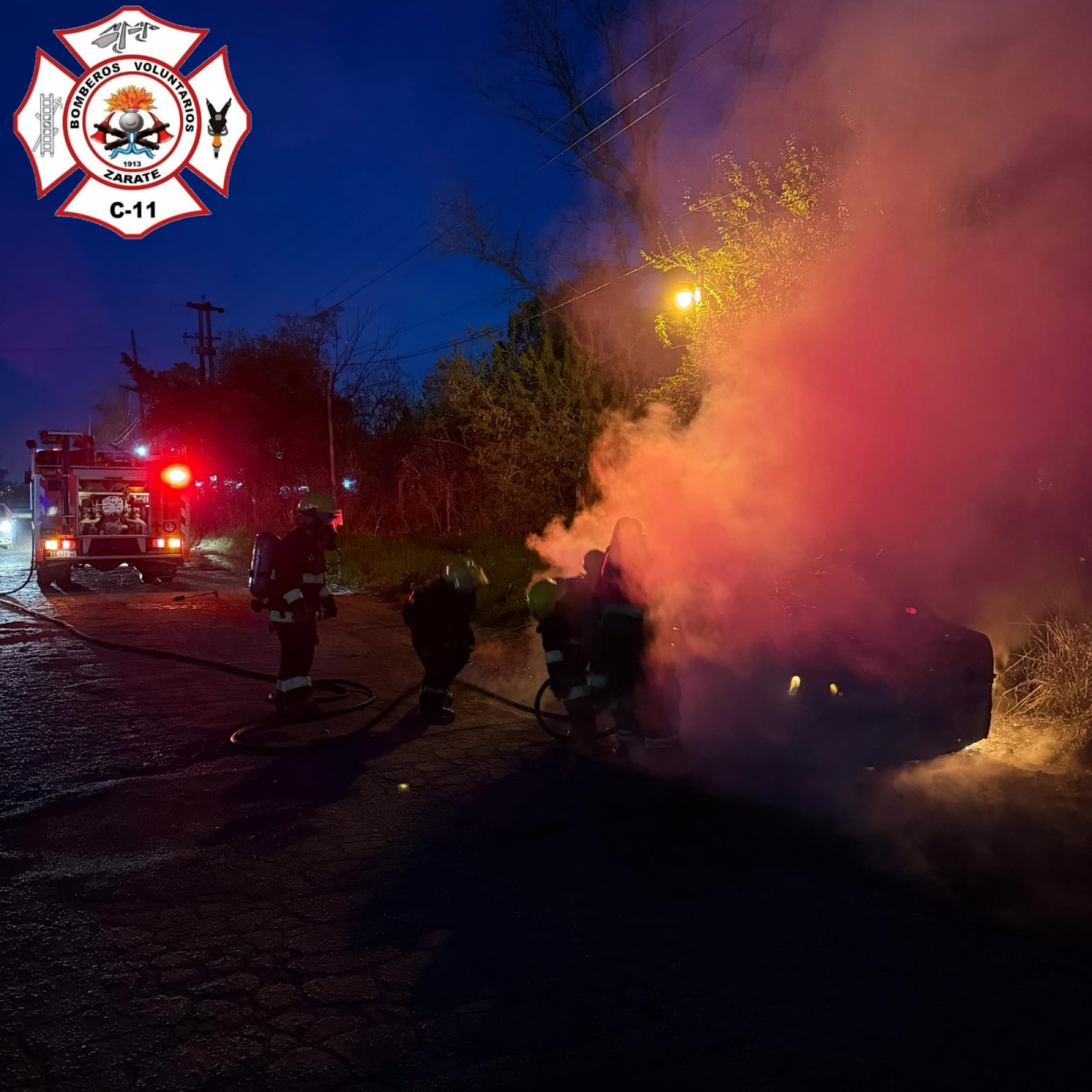 Este miercoles por la tarde, cerca de las 19.30hs, Bomberos Voluntarios de Zárate asistió a un incendio vehicular que ocurrió en la colectora sur de ruta 9 a la altura de la compañía Master Bus.